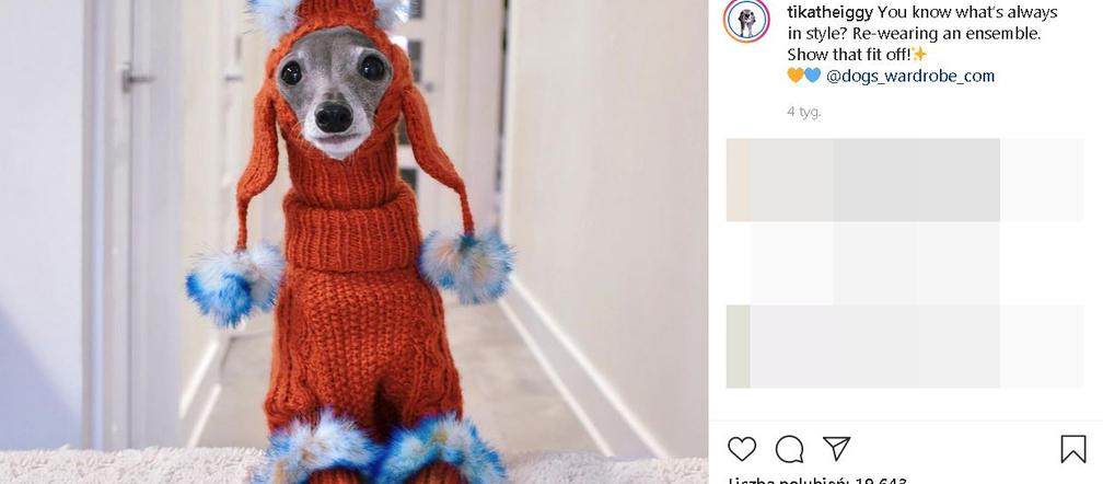 Czy raczej przebierana, bo jak podkreślają właściciele czworonoga na Instagramie, jest on płci żeńskiej. Czego nie ma na profilu Tiki?! Fantazyjne czapki, bajkowo kolorowe bluzeczki i kubraczki, które pozwalają na spacery nawet w największy kanadyjski ziąb. Jednak jak żalą się twórcy profilu, przez lockdowny i pandemię nie da się paradować po ulicach tak jak kiedyś i trzeba pozować w domowym zaciszu! Hit czy kit?