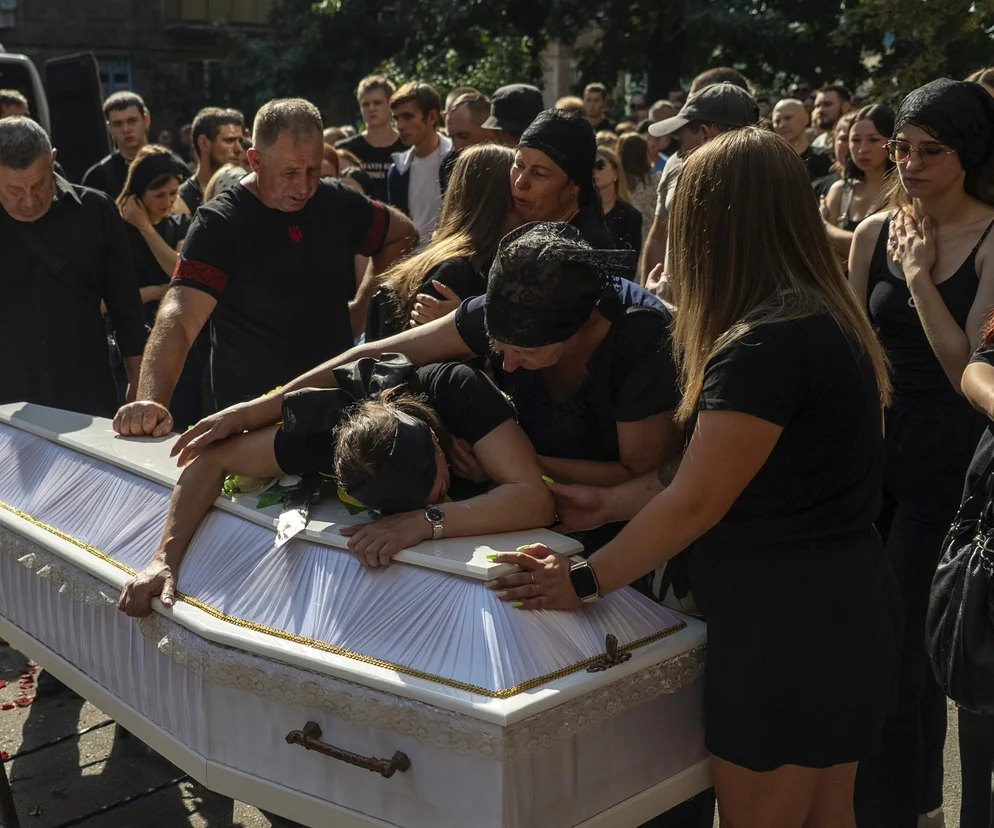 Pogrzeb najmłodszej ofiary ataku Putina na Kijów. Pochowano dwuletnią Angelinę i jej 24-letnią matkę