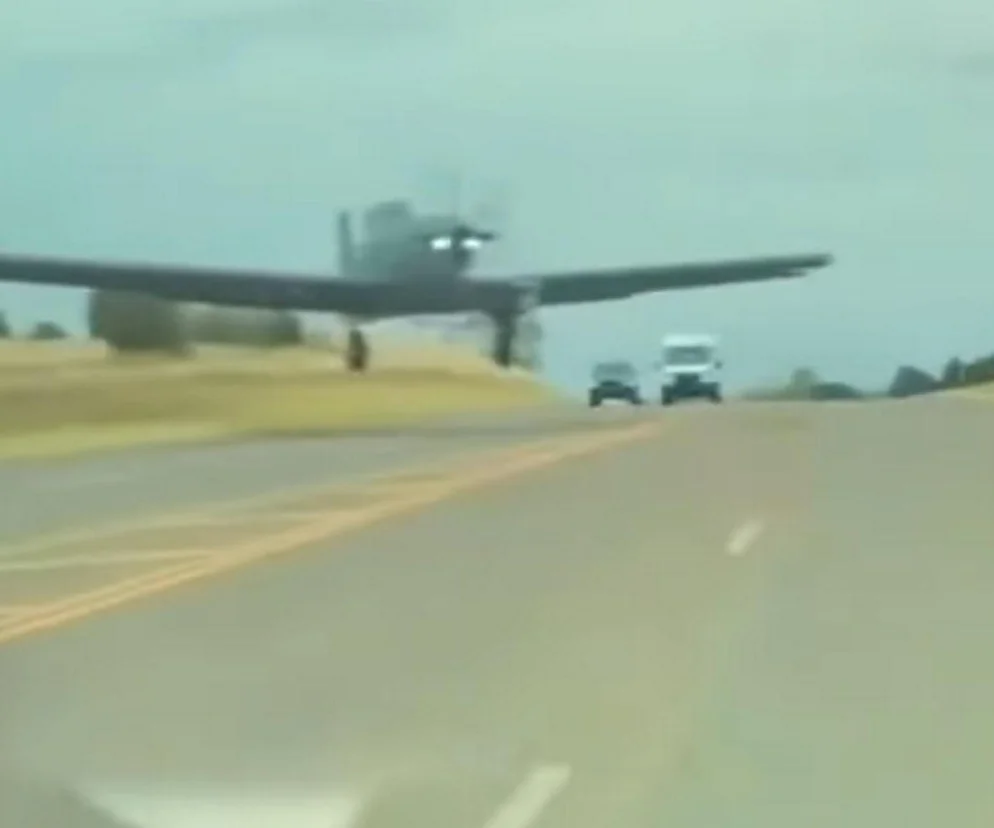 Wojskowy samolot nagle pojawił się pośrodku autostrady. Kamerka samochodowa nagrała wszystko, stał się cud