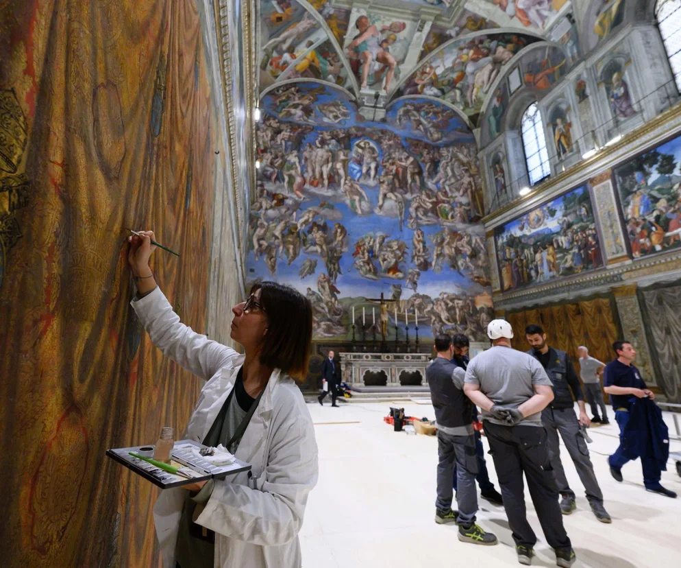W Kaplicy Sykstyńskiej ustawiane są stoły, podesty, przygotowywane miejsce, gdzie stanie urna, do której kardynałowie wrzucać będą głosy. Posadzkę przykryto drewnianą podłogą.