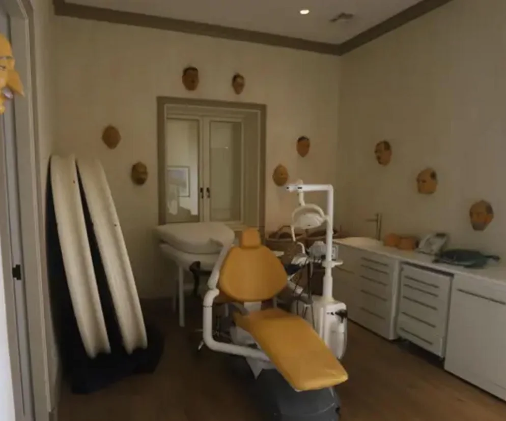 Jedno pomieszczenie może budzić grozę. Na środku fotel dentystyczny, na ścianach dziwne maski