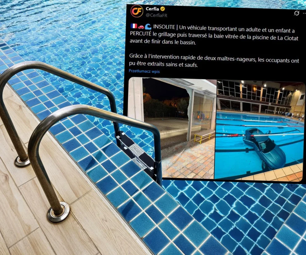 Czegoś takiego ratownicy pracujący na krytym miejskim basenie w mieście La Ciotat na pewno się nie spodziewali! Musieli skakać do wody nie tylko z powodu tonących ludzi, ale i... tonącego samochodu. Pewna 38-letnia kobieta przyjechała na basen samochodem. Na tylnym siedzeniu siedziała jej 5-letnia córka. Kobieta chciała zaparkować samochód, a wtedy nagle rozległ się brzdęk tłuczonego szkła i... potężne chlupnięcie. 38-latka pomyliła pedał hamulca z pedałem gazu i zamiast ustawić auto na miejscu parkingowym tuż przy szklanej ścianie krytej pływalni, przebiła z impetem tę ścianę, a jej Jaguar XF wylądował w basenie. Sytuacja była poważna. Matka i dziecku groziło utonięcie, ale na szczęście do akcji wkroczyli ratownicy z basenu.
