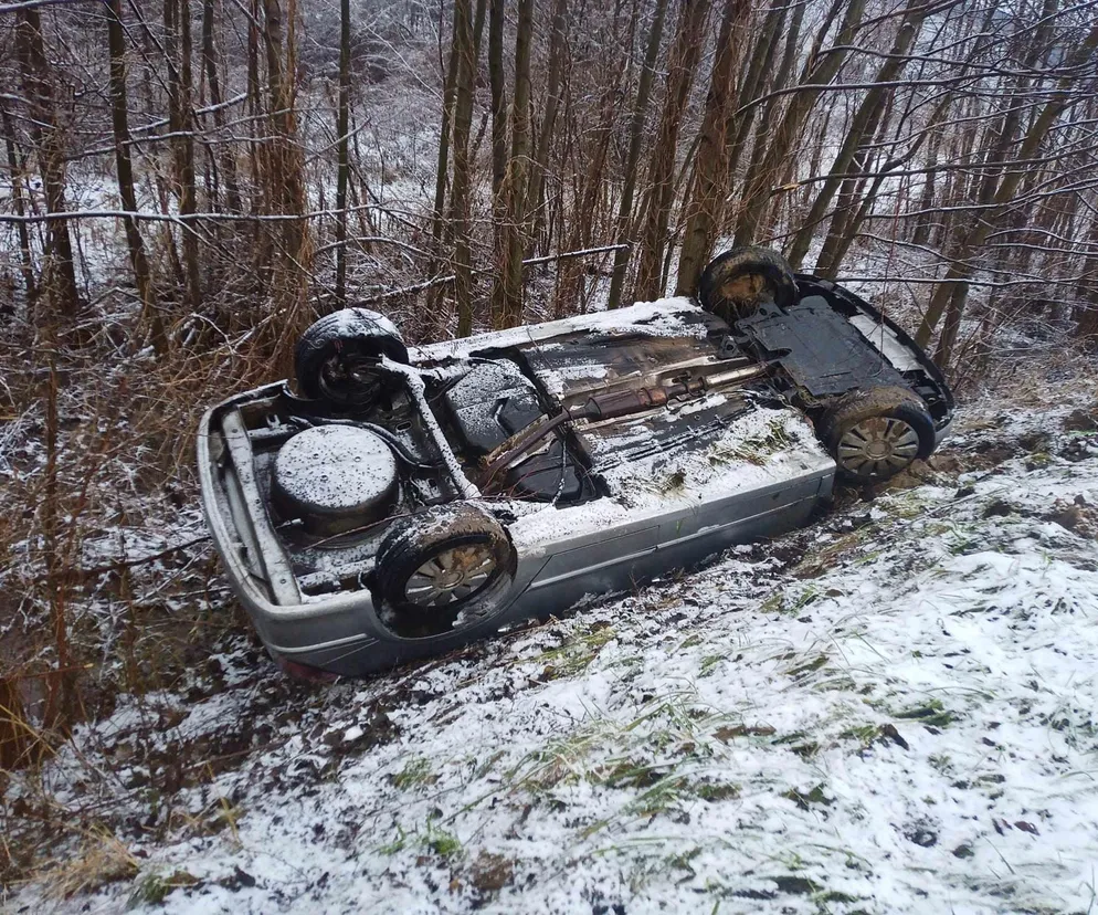 Straż pożarna wyjechała do opla, którego kierowca wypadł z drogi i dachował w rowie koło Nowego Kisielina.